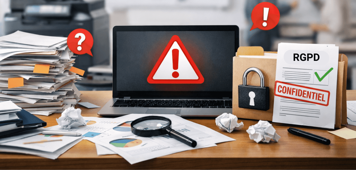 Les documents contiennent souvent des données sensibles. Sans règles de sécurité adaptées (chiffrement, accès restreint, sauvegardes), l’entreprise s’expose à des risques de fuite, de perte ou de non-conformité réglementaire.